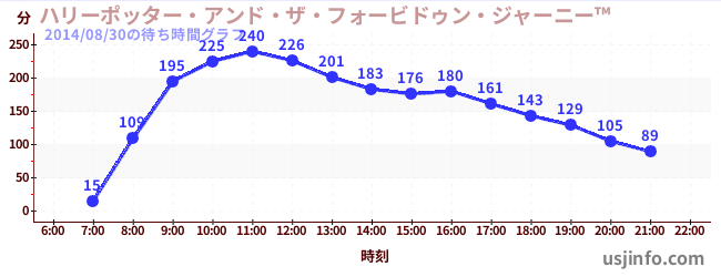 • ハリーポッター・アンド・ザ・フォービドゥン・ジャーニー™$B$N(B2014年08月30日の待ち時間