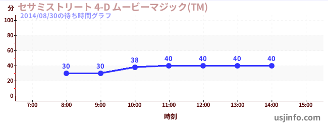 • セサミストリート 4-D ムービーマジック(TM)$B$N(B2014年08月30日の待ち時間