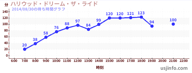 • ハリウッド・ドリーム・ザ・ライド〜バックドロップ〜$B$N(B2014年08月30日の待ち時間