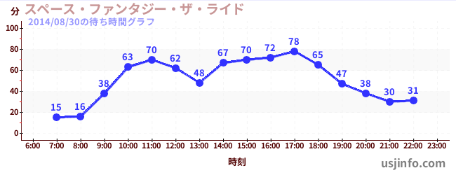 • スペース・ファンタジー・ザ・ライド$B$N(B2014年08月30日の待ち時間