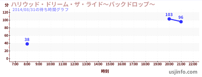 • ハリウッド・ドリーム・ザ・ライド〜バックドロップ〜$B$N(B2014年08月31日の待ち時間