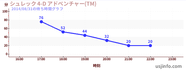 • シュレック 4-D アドベンチャー(TM)$B$N(B2014年08月31日の待ち時間