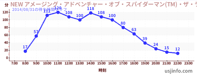 • NEW アメージング・アドベンチャー・オブ・スパイダーマン(TM)・ザ・ライド 4K3D$B$N(B2014年08月31日の待ち時間