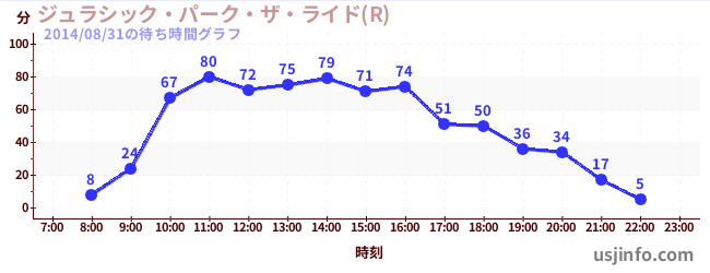 • ジュラシック・パーク・ザ・ライド(R)$B$N(B2014年08月31日の待ち時間