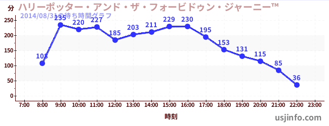 • ハリーポッター・アンド・ザ・フォービドゥン・ジャーニー™$B$N(B2014年08月31日の待ち時間