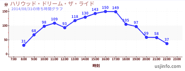 • ハリウッド・ドリーム・ザ・ライド$B$N(B2014年08月31日の待ち時間