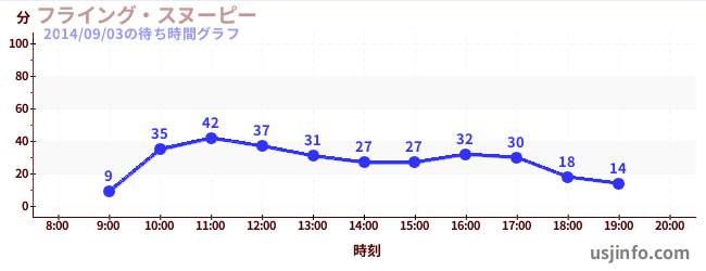 • フライング・スヌーピー$B$N(B2014年09月03日の待ち時間