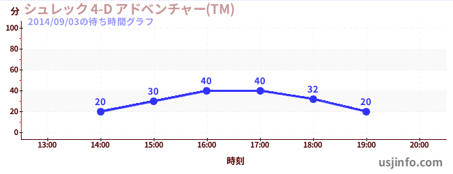 • シュレック 4-D アドベンチャー(TM)$B$N(B2014年09月03日の待ち時間