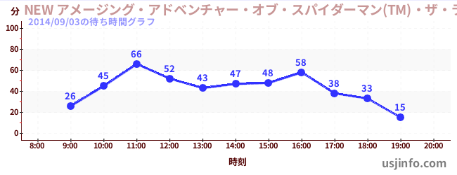• NEW アメージング・アドベンチャー・オブ・スパイダーマン(TM)・ザ・ライド 4K3D$B$N(B2014年09月03日の待ち時間