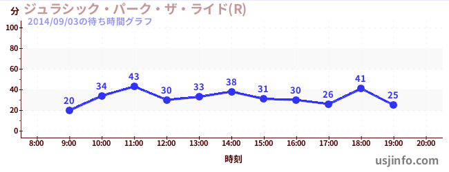 • ジュラシック・パーク・ザ・ライド(R)$B$N(B2014年09月03日の待ち時間