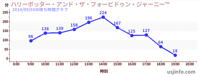 • ハリーポッター・アンド・ザ・フォービドゥン・ジャーニー™$B$N(B2014年09月03日の待ち時間