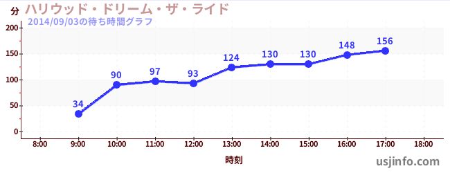 • ハリウッド・ドリーム・ザ・ライド$B$N(B2014年09月03日の待ち時間