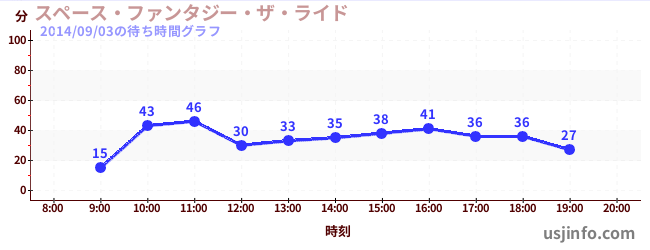 • スペース・ファンタジー・ザ・ライド$B$N(B2014年09月03日の待ち時間