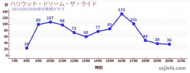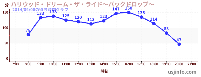 • ハリウッド・ドリーム・ザ・ライド〜バックドロップ〜$B$N(B2014年09月06日の待ち時間