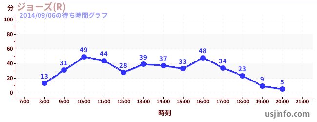 • ジョーズ(R)$B$N(B2014年09月06日の待ち時間