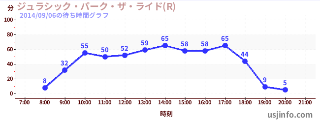 • ジュラシック・パーク・ザ・ライド(R)$B$N(B2014年09月06日の待ち時間