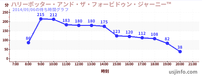 • ハリーポッター・アンド・ザ・フォービドゥン・ジャーニー™$B$N(B2014年09月06日の待ち時間