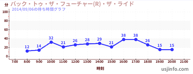• バック・トゥ・ザ・フューチャー(R)・ザ・ライド$B$N(B2014年09月06日の待ち時間