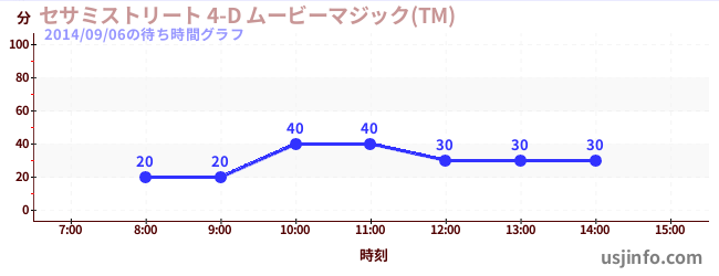 • セサミストリート 4-D ムービーマジック(TM)$B$N(B2014年09月06日の待ち時間