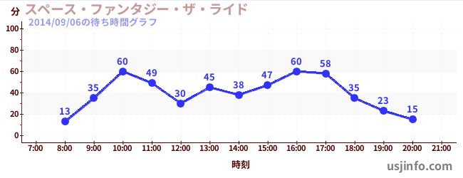 • スペース・ファンタジー・ザ・ライド$B$N(B2014年09月06日の待ち時間
