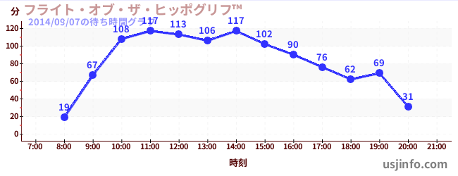 • フライト・オブ・ザ・ヒッポグリフ™$B$N(B2014年09月07日の待ち時間