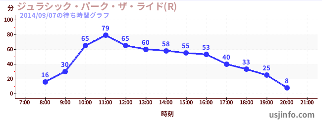 • ジュラシック・パーク・ザ・ライド(R)$B$N(B2014年09月07日の待ち時間