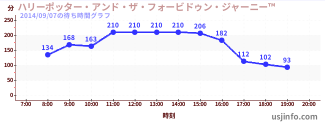 • ハリーポッター・アンド・ザ・フォービドゥン・ジャーニー™$B$N(B2014年09月07日の待ち時間