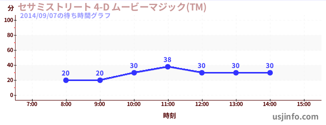 • セサミストリート 4-D ムービーマジック(TM)$B$N(B2014年09月07日の待ち時間