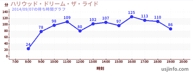 • ハリウッド・ドリーム・ザ・ライド$B$N(B2014年09月07日の待ち時間