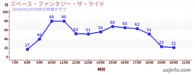 • スペース・ファンタジー・ザ・ライド$B$N(B2014年09月07日の待ち時間