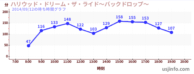 • ハリウッド・ドリーム・ザ・ライド〜バックドロップ〜$B$N(B2014年09月12日の待ち時間