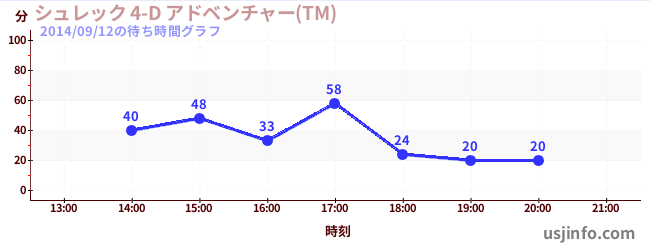 • シュレック 4-D アドベンチャー(TM)$B$N(B2014年09月12日の待ち時間