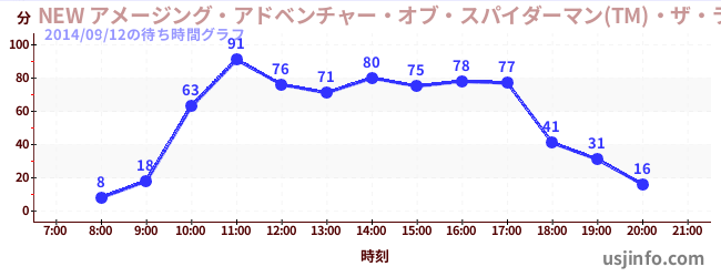 • NEW アメージング・アドベンチャー・オブ・スパイダーマン(TM)・ザ・ライド 4K3D$B$N(B2014年09月12日の待ち時間