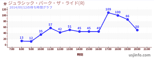 • ジュラシック・パーク・ザ・ライド(R)$B$N(B2014年09月12日の待ち時間