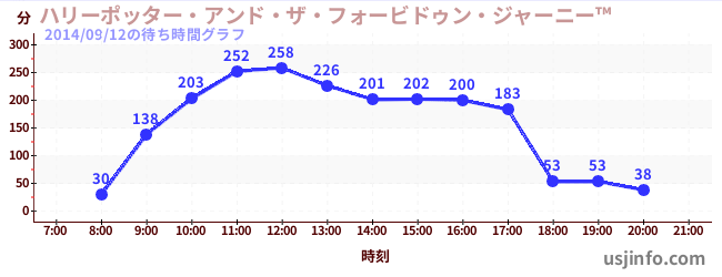 • ハリーポッター・アンド・ザ・フォービドゥン・ジャーニー™$B$N(B2014年09月12日の待ち時間