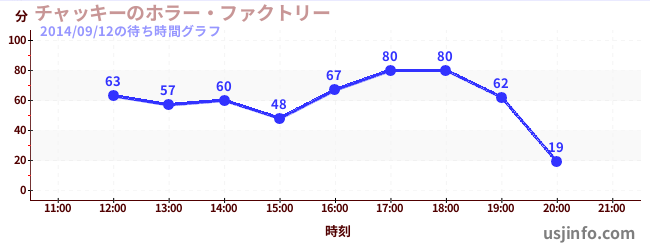 • チャッキーのホラー・ファクトリー$B$N(B2014年09月12日の待ち時間