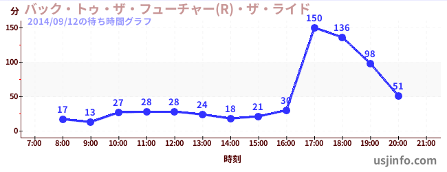 • バック・トゥ・ザ・フューチャー(R)・ザ・ライド$B$N(B2014年09月12日の待ち時間