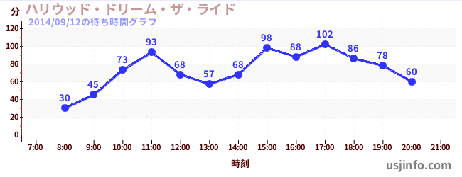 • ハリウッド・ドリーム・ザ・ライド$B$N(B2014年09月12日の待ち時間
