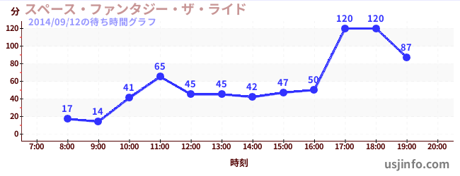 • スペース・ファンタジー・ザ・ライド$B$N(B2014年09月12日の待ち時間