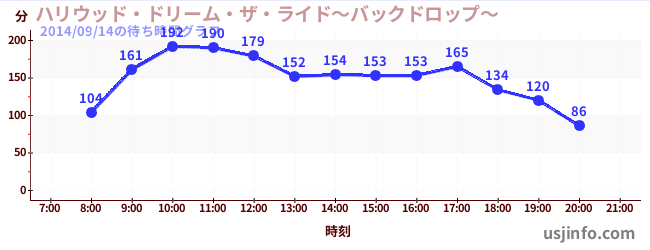 • ハリウッド・ドリーム・ザ・ライド〜バックドロップ〜$B$N(B2014年09月14日の待ち時間