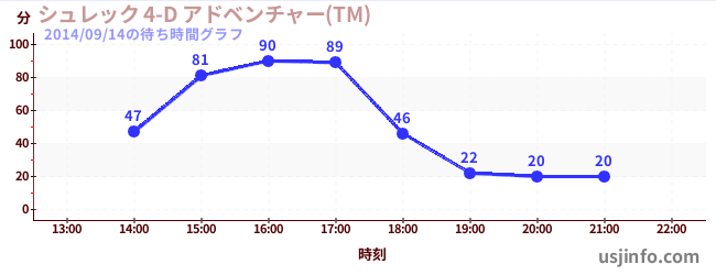 • シュレック 4-D アドベンチャー(TM)$B$N(B2014年09月14日の待ち時間