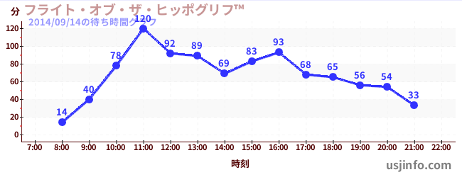 • フライト・オブ・ザ・ヒッポグリフ™$B$N(B2014年09月14日の待ち時間