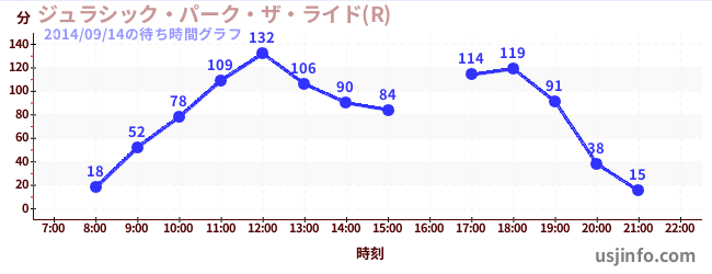 • ジュラシック・パーク・ザ・ライド(R)$B$N(B2014年09月14日の待ち時間