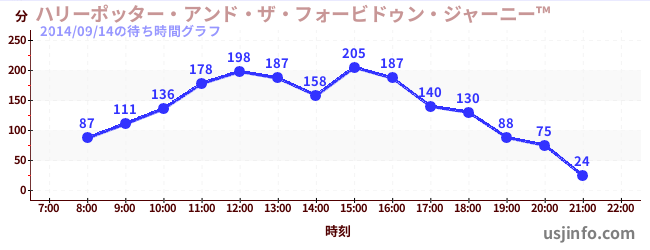 • ハリーポッター・アンド・ザ・フォービドゥン・ジャーニー™$B$N(B2014年09月14日の待ち時間