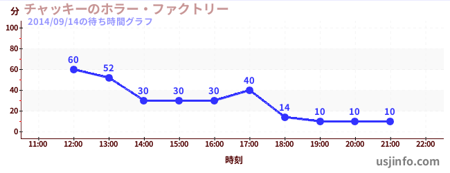• チャッキーのホラー・ファクトリー$B$N(B2014年09月14日の待ち時間