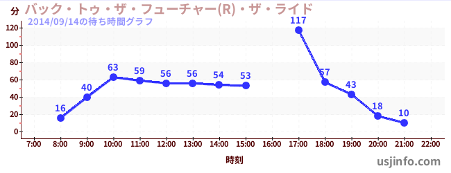 • バック・トゥ・ザ・フューチャー(R)・ザ・ライド$B$N(B2014年09月14日の待ち時間