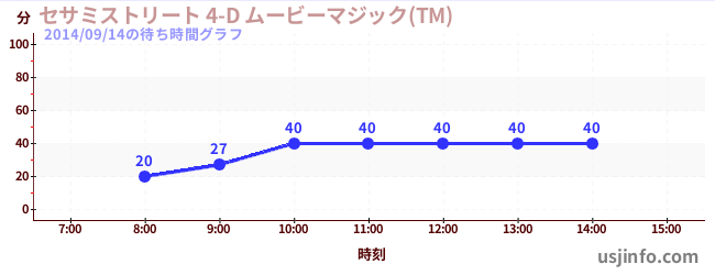• セサミストリート 4-D ムービーマジック(TM)$B$N(B2014年09月14日の待ち時間