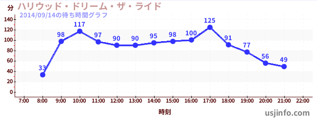 • ハリウッド・ドリーム・ザ・ライド$B$N(B2014年09月14日の待ち時間