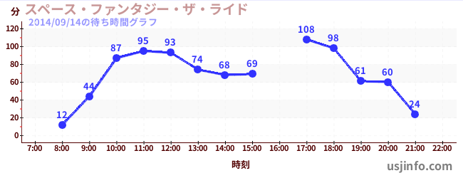 • スペース・ファンタジー・ザ・ライド$B$N(B2014年09月14日の待ち時間
