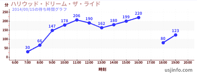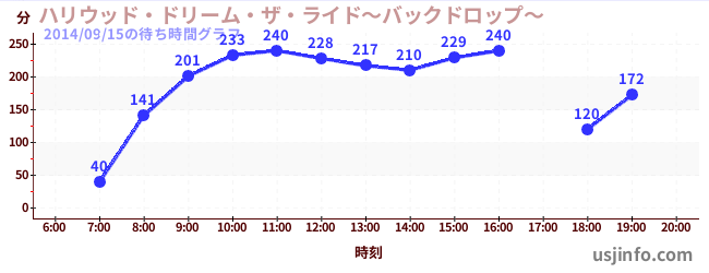 • ハリウッド・ドリーム・ザ・ライド〜バックドロップ〜$B$N(B2014年09月15日の待ち時間